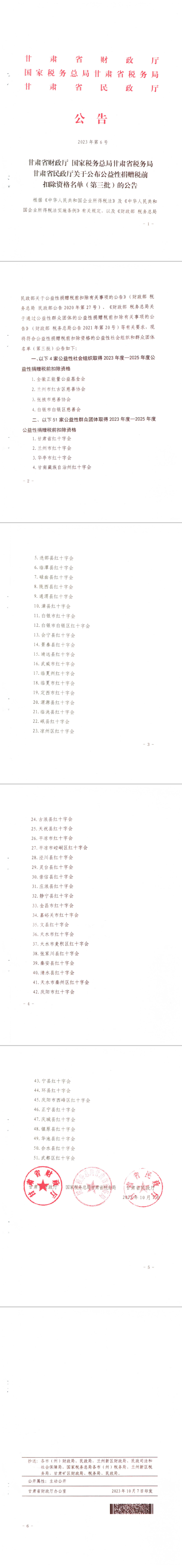 轉(zhuǎn)載|甘肅省財(cái)政廳 國家稅務(wù)總局甘肅省稅務(wù)局甘肅省民政廳關(guān)于公布公益性捐贈(zèng)稅前扣除資格名單(第三批)的公告